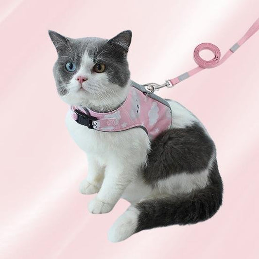 Cute & Comfy Cat Safety Harness + Leash Set - Breathable, Reflective